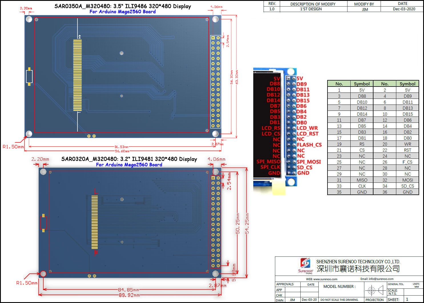 Item Parameter Manufacturer Surenoo Display Type Arduino Display Module Continuity Supply More than 10 years Model Details SAR0320A-320480: 3.2"(ILI9481) inch 320*480 TFT Color LCD Module for Arduino Mega2560