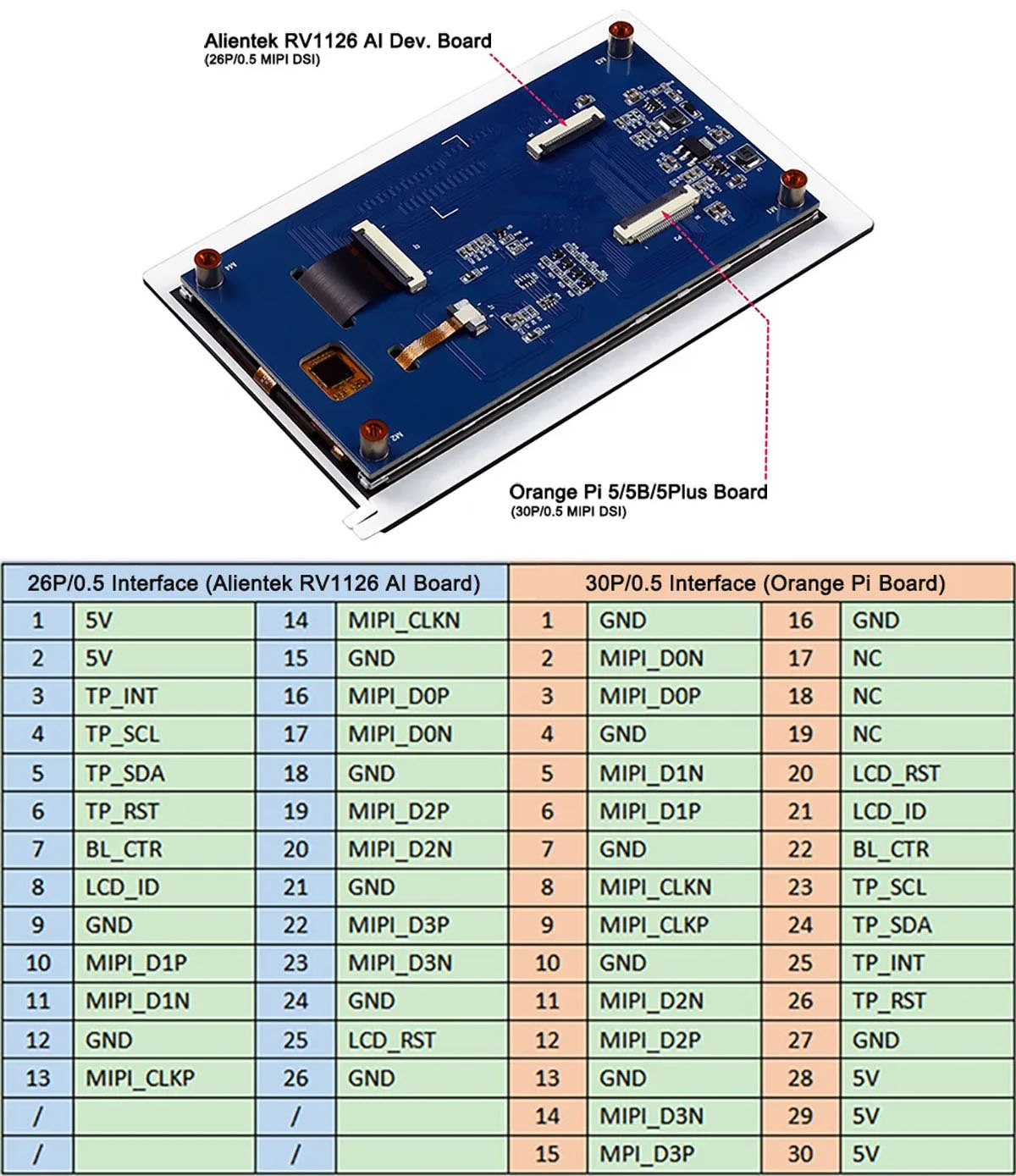 Surenoo DSI Display 5.0" inch 720*1280 high-definition IPS LCD Display Module Screen with Capacitive Touch Panel CTP DSI MIPI Interface for Orange Pi OP-5 / OPI-5B / OPI-5Plus / OPI-5Pro Development Board- Product Parameters