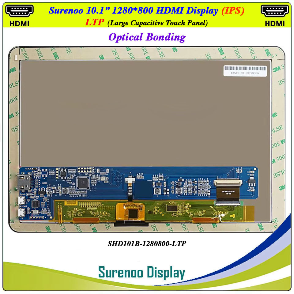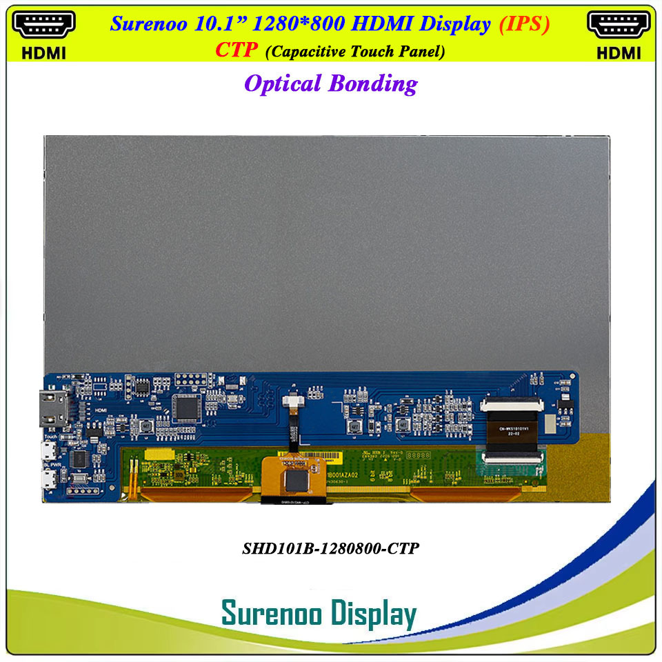 Surenoo HDMI Display 10.1" inch 1280*800 IPS LCD Display Module Screen Monitor with Optical Bonding USB Capacitive Touch Panel CTP LTP for Windows Win11 RaspBerry Pi 4B/5 Orange Pi