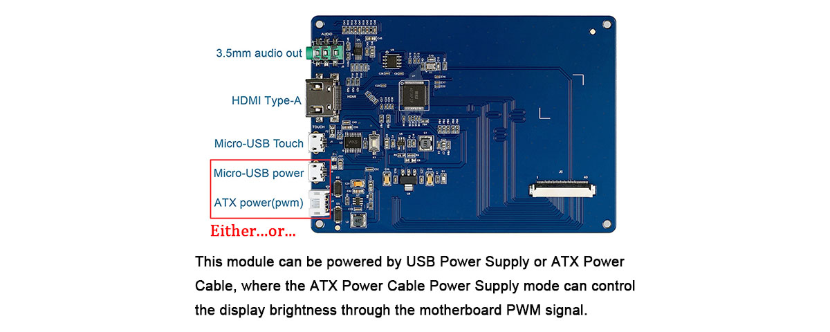 >> Pin Definition of ATX Pin HeaderPIN Symbol Function Description 1 9-12V External power input (9~12V) 2 GND Power Ground 3 PWM(EN) Backlight On/Off Control Input. A high input at EN turns on the converter, and a low input turns it off. When not used, connect EN to the input source for automatic startup. The EN pin cannot be left floating.