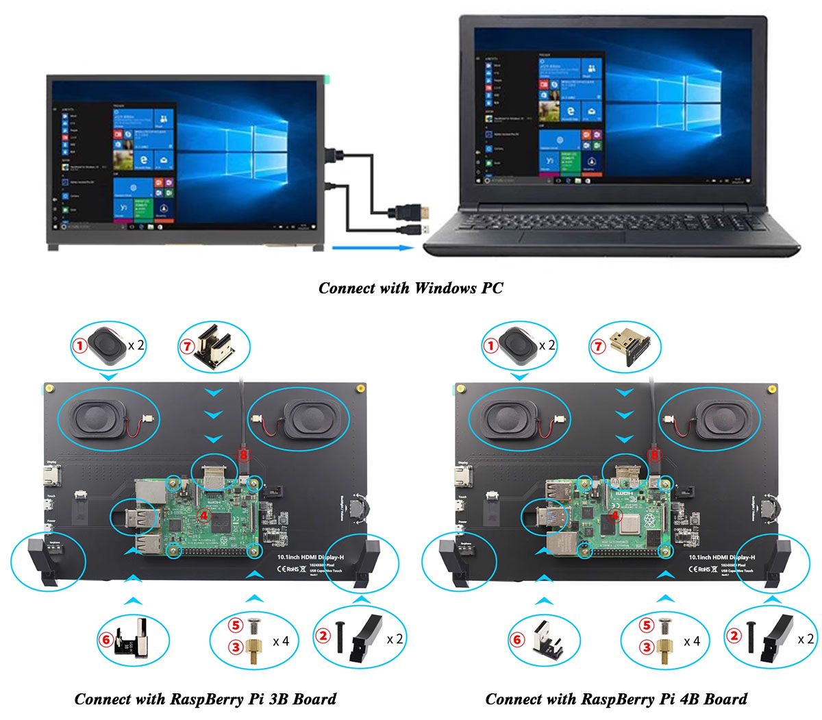 Screw Positioning Holes for RaspBerry Pi 3B-4B (Free USB and HDMI Adapter)