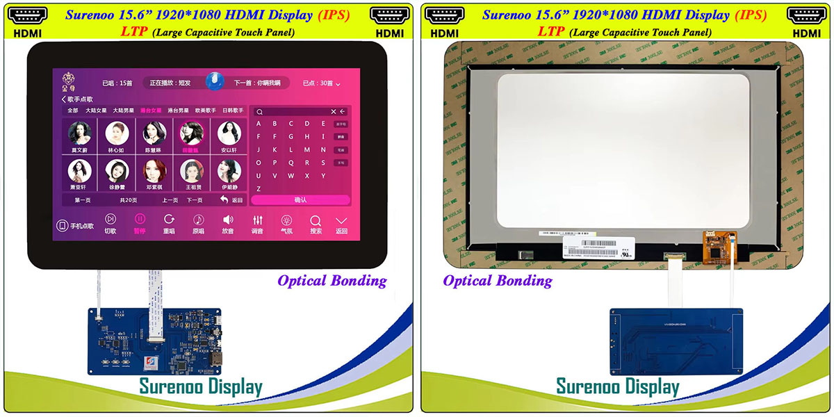 Surenoo HDMI Display 15.6" inch 1920*1080 1080P IPS LCD Display Module Screen Monitor with USB Capacitive Touch Panel CTP LTP for Windows Win11 RaspBerry Pi 4B/5 Orange Pi