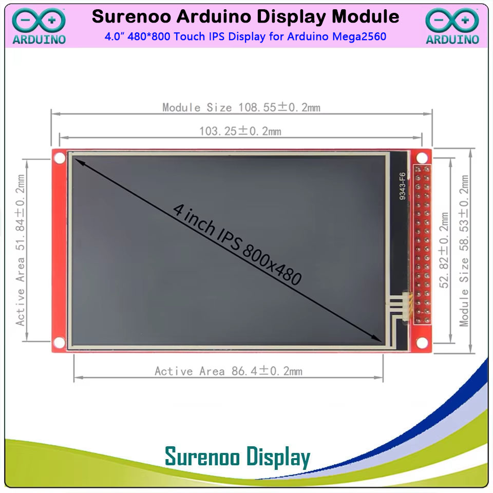 | SAR0400C-480800 | 3.97" | 480*800 | NT35510 | RTP | 58.65*108.48 | 51.84*86.40 | 5.0V | × | √ | 8-Bit Parallel 16-Bit Parallel |