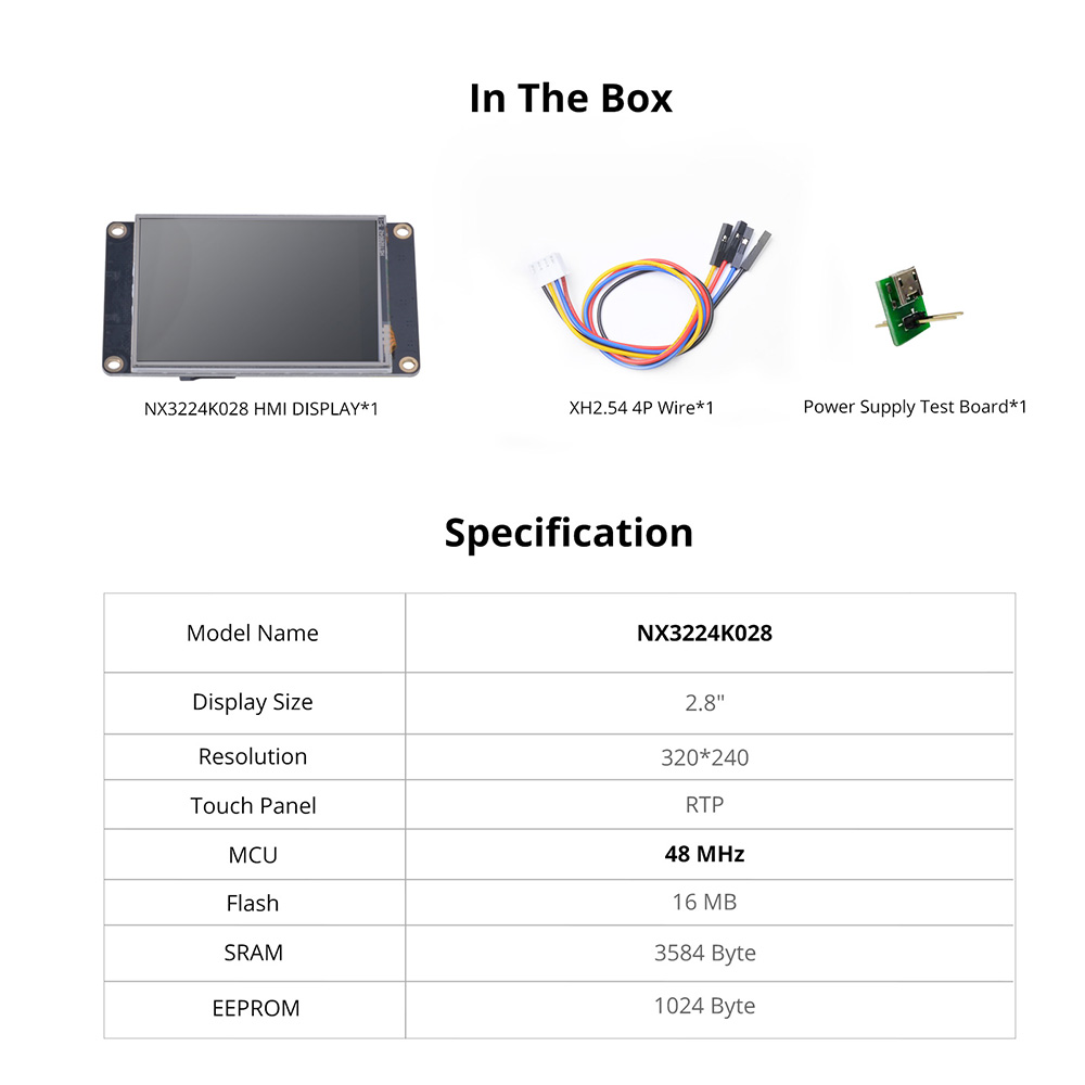 Nextion Enhanced Series HMI Touch Display: 2.8" 320*240 320240 HMI Serial UART TFT LCD Module Display Screen Panel with Resisive Touch Panel RTP NX3224K028, 3D-Bezel is Optional