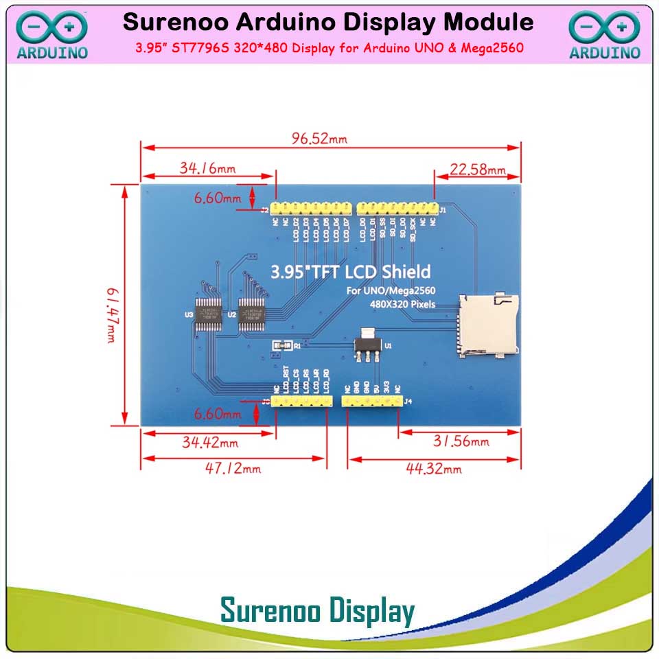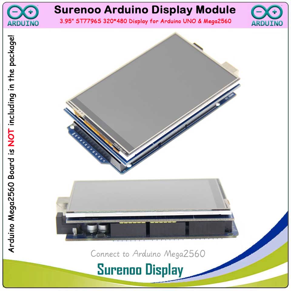 Surenoo Arduino Display 4.0/3.95" inch 320*480 ST7796S TFT Color LCD Display Module Screen Resistive Touch Panel RTP Optional support Arduino 8-Bit Parallel for Arduino UNO & Mega2560 Development Board
