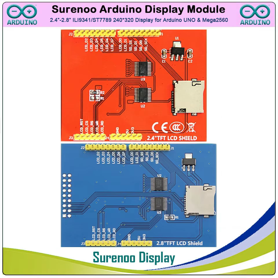 Surenoo Arduino Display 2.4"-2.8" inch 240*320 ILI9341 ST7789 TFT Color LCD Display Module Screen Resistive Touch Panel RTP support Arduino 8-Bit Parallel for Arduino UNO & Mega2560 Development Board