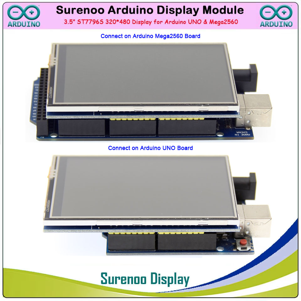 Surenoo Arduino Display 3.5" inch 320*480 ILI9486 TFT Color LCD Display Module Screen Resistive Touch Panel RTP support Arduino 8-Bit Parallel for Arduino UNO & Mega2560 Development Board
