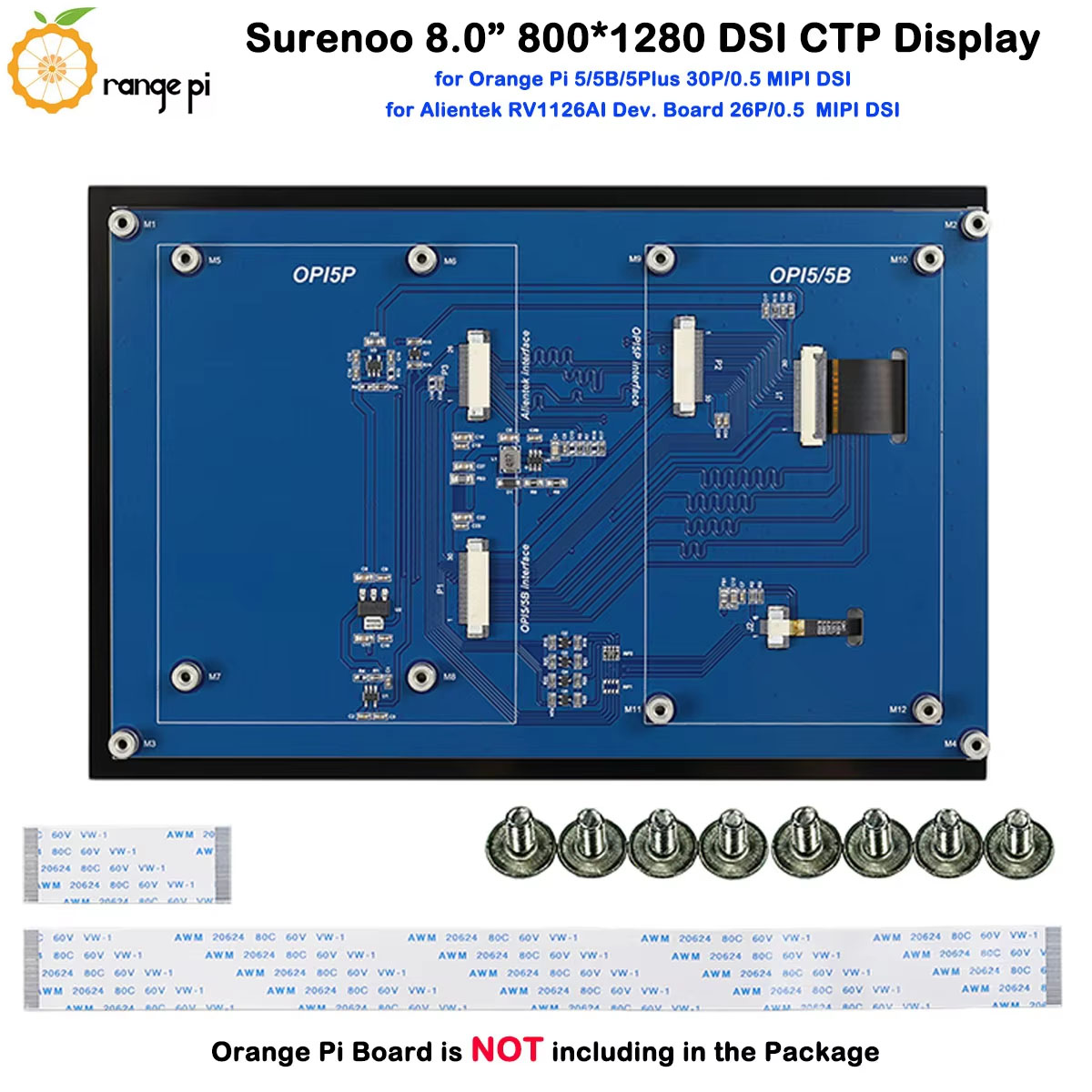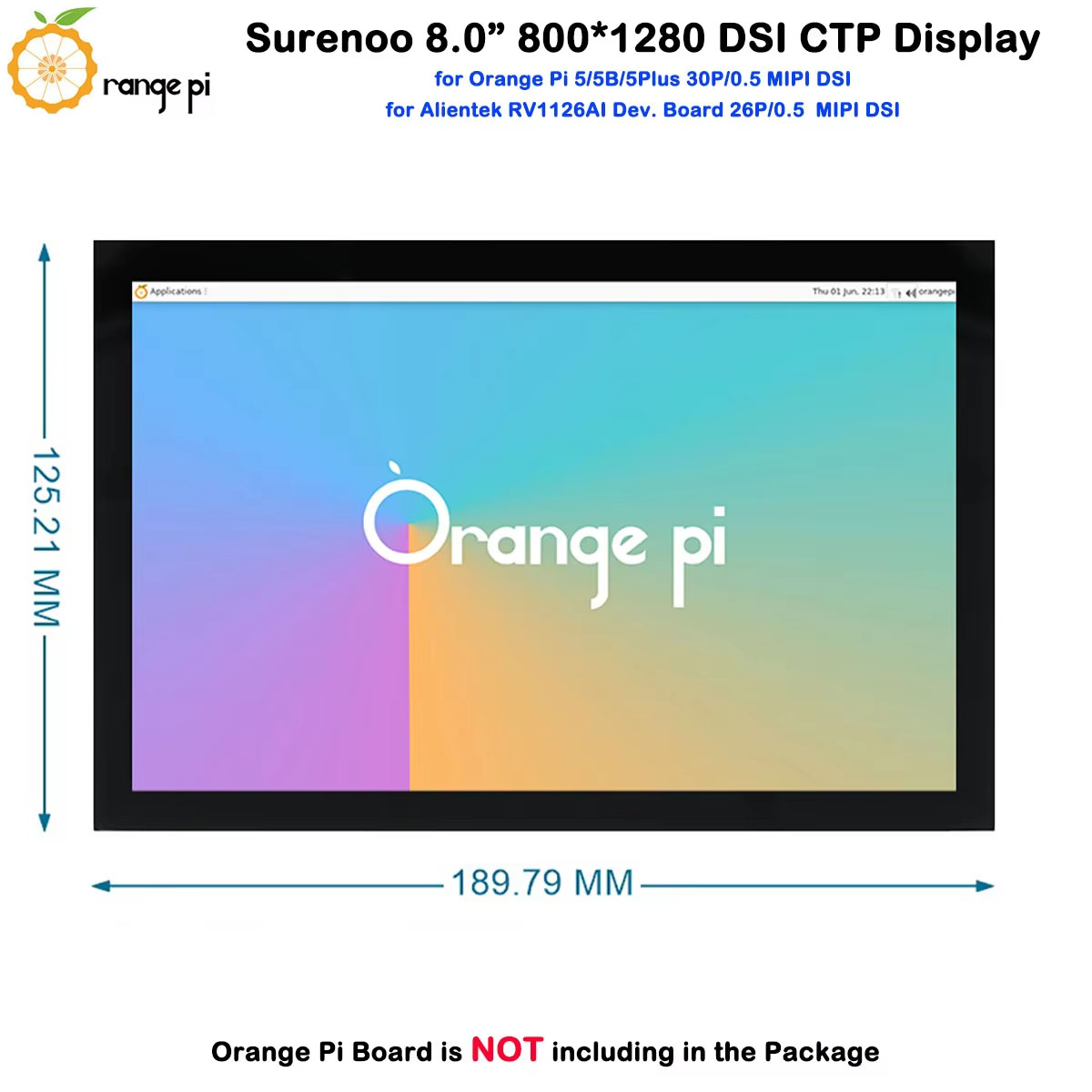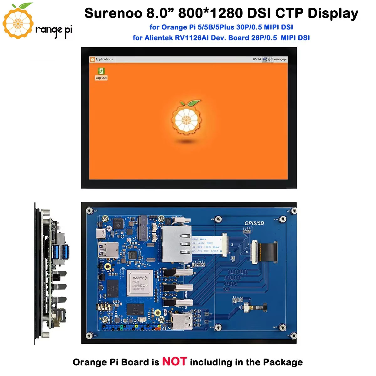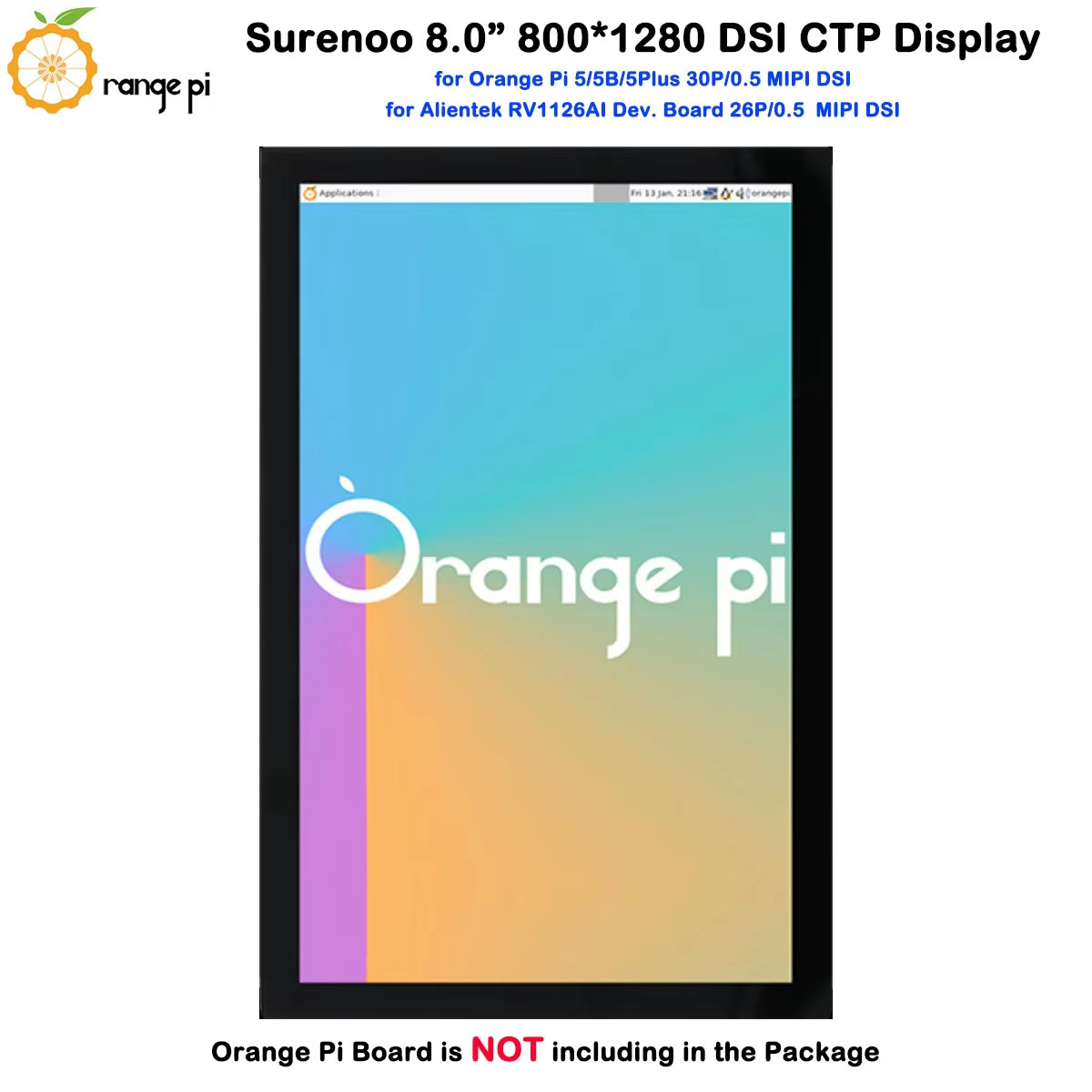 Surenoo DSI Display 8.0" inch 800*1280 high-definition IPS LCD Display Module Screen with Capacitive Touch Panel CTP DSI MIPI Interface for Orange Pi OPI-5 / OPI-5B / OPI-5Plus / OPI-5Pro Development Board