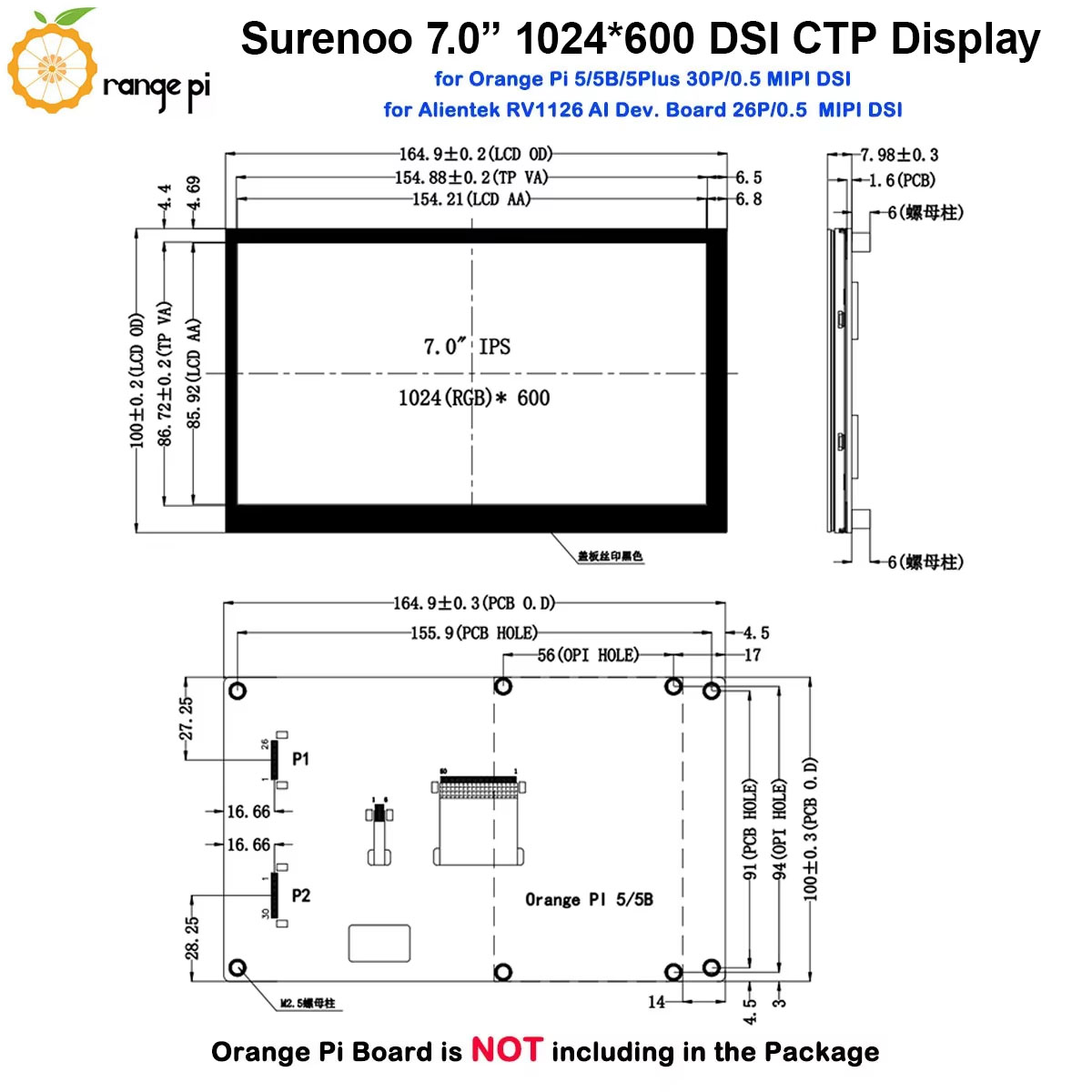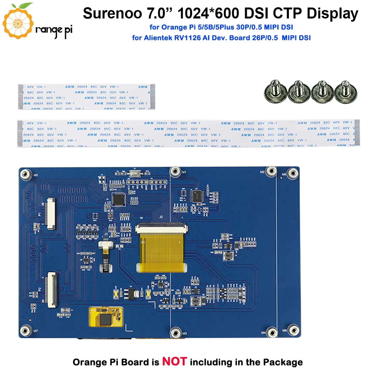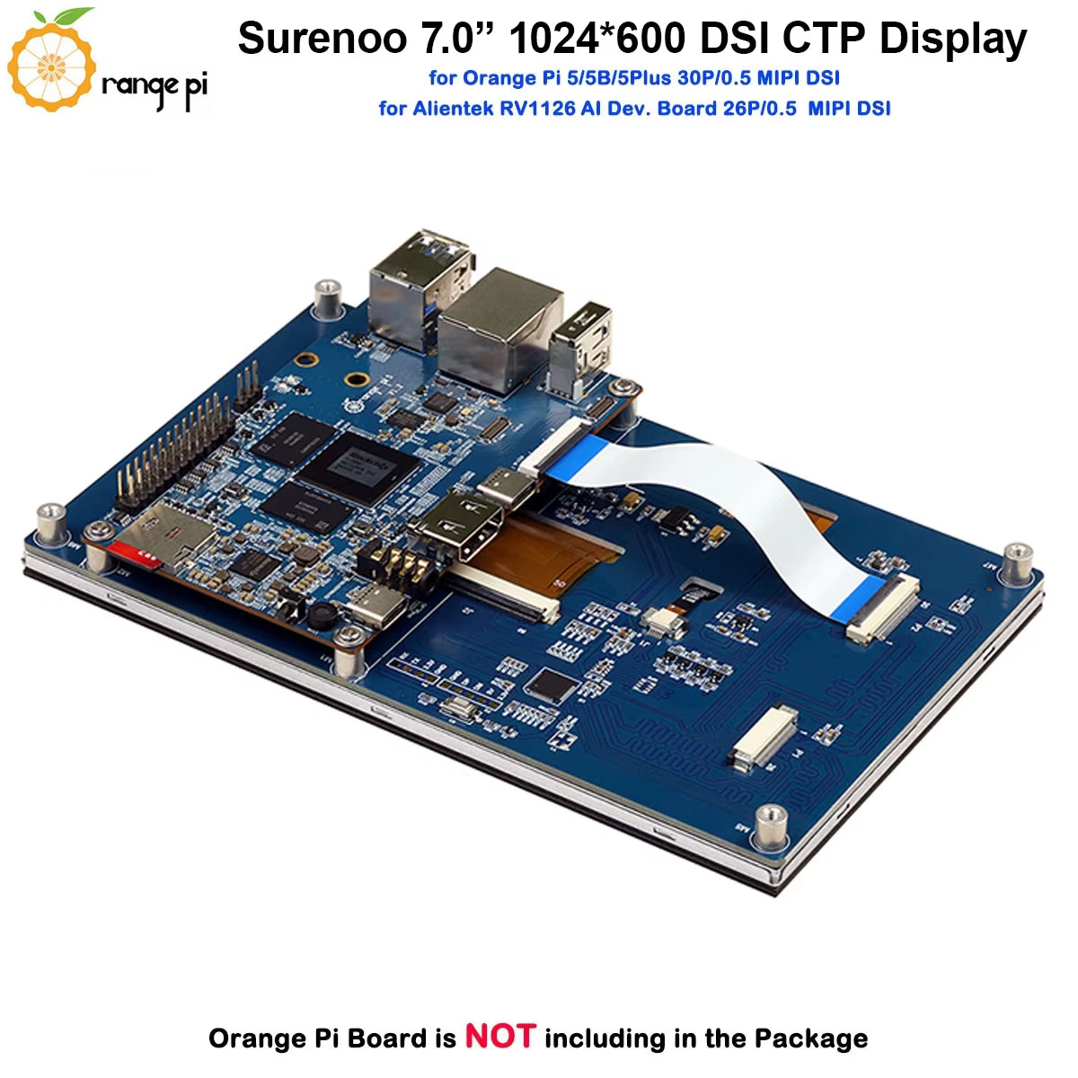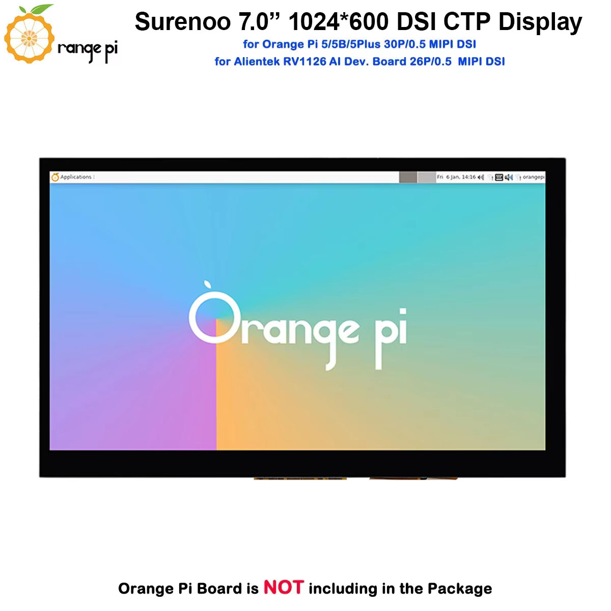 Surenoo DSI Display 7.0" inch 1024*600 high-definition IPS LCD Display Module Screen with Capacitive Touch Panel CTP DSI MIPI Interface for Orange Pi OPI-5 / OPI-5B / OPI-5Plus / OPI-5Pro Development Board
