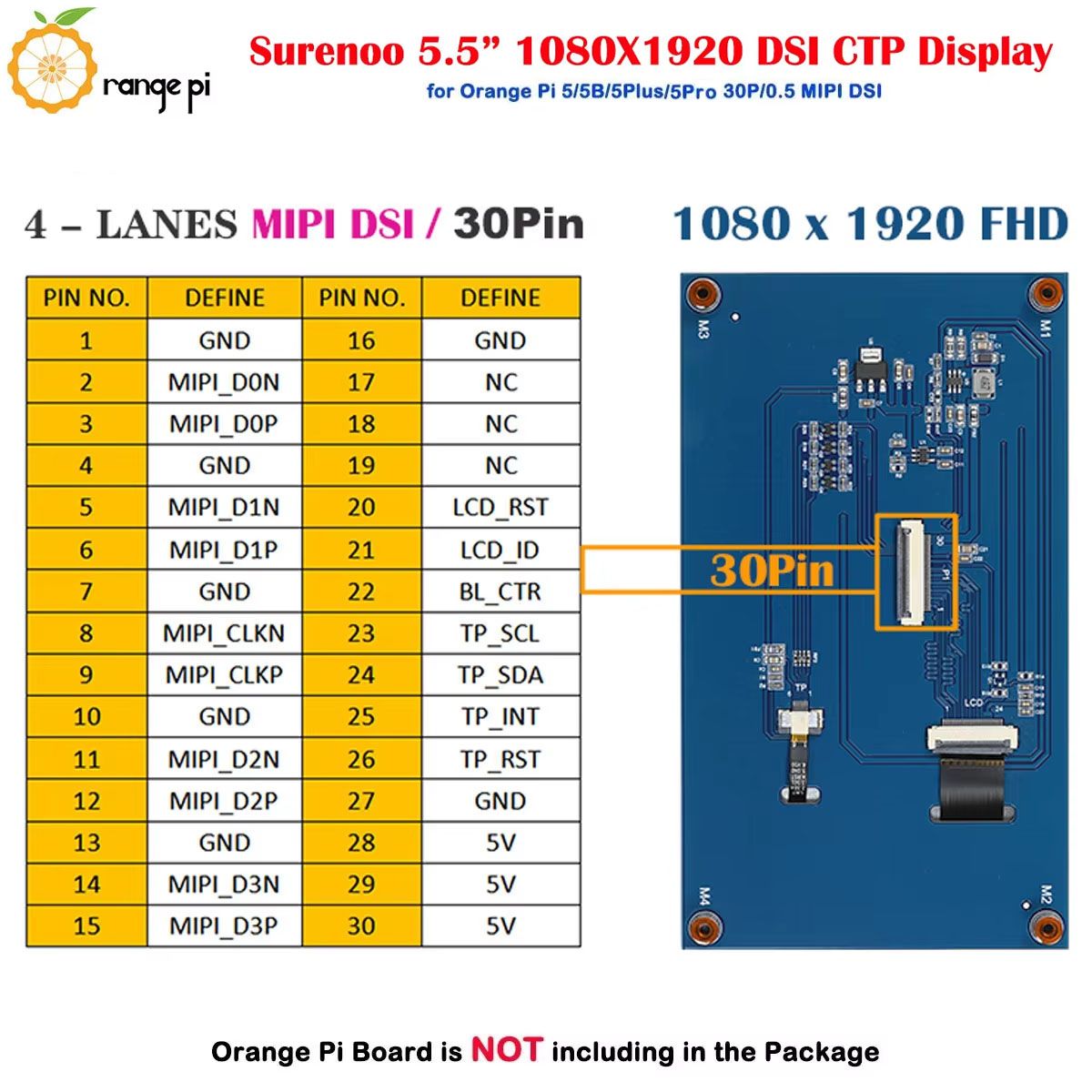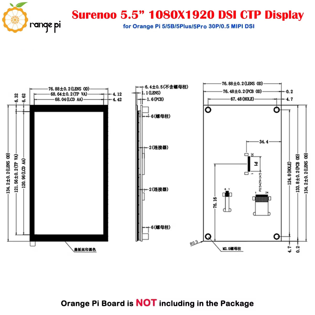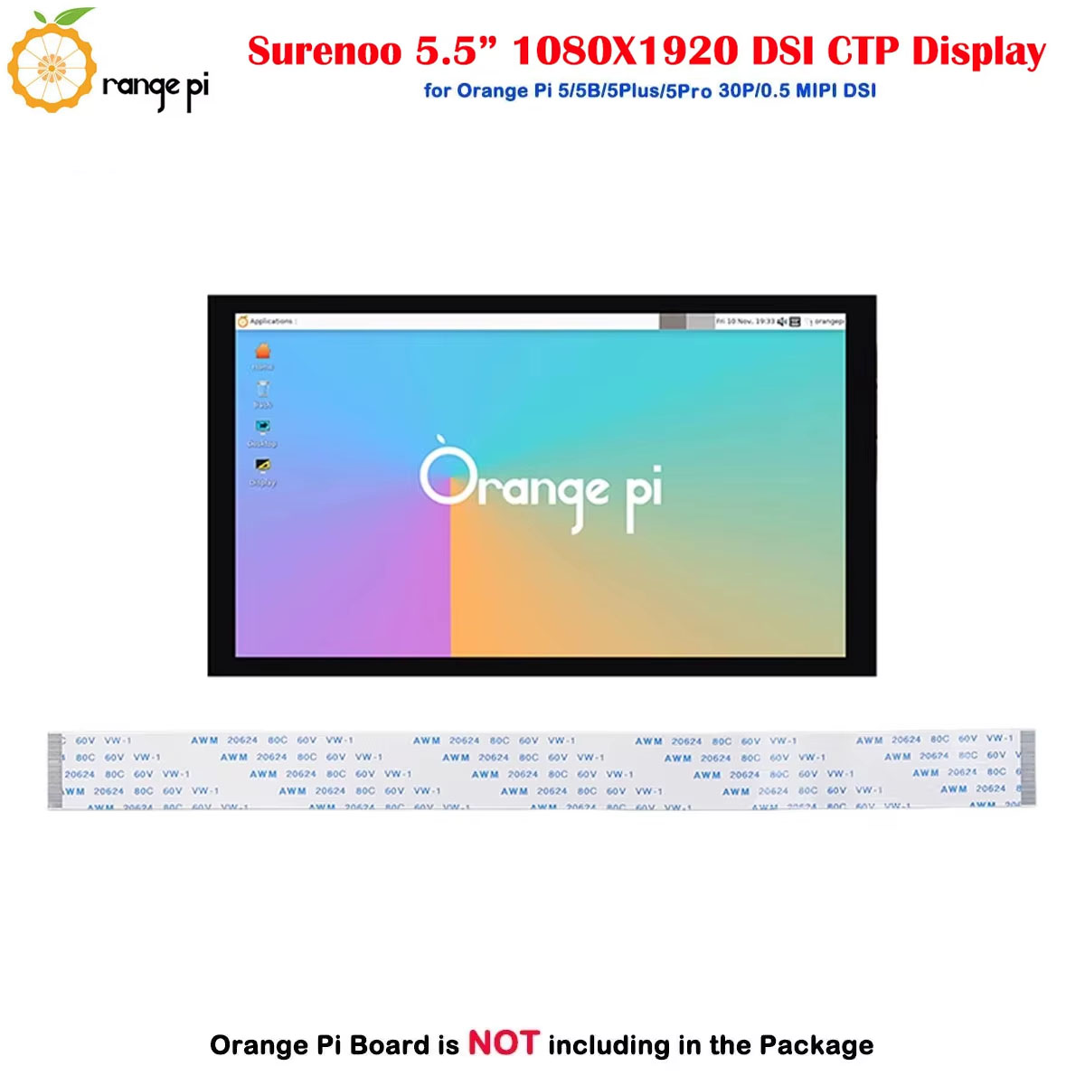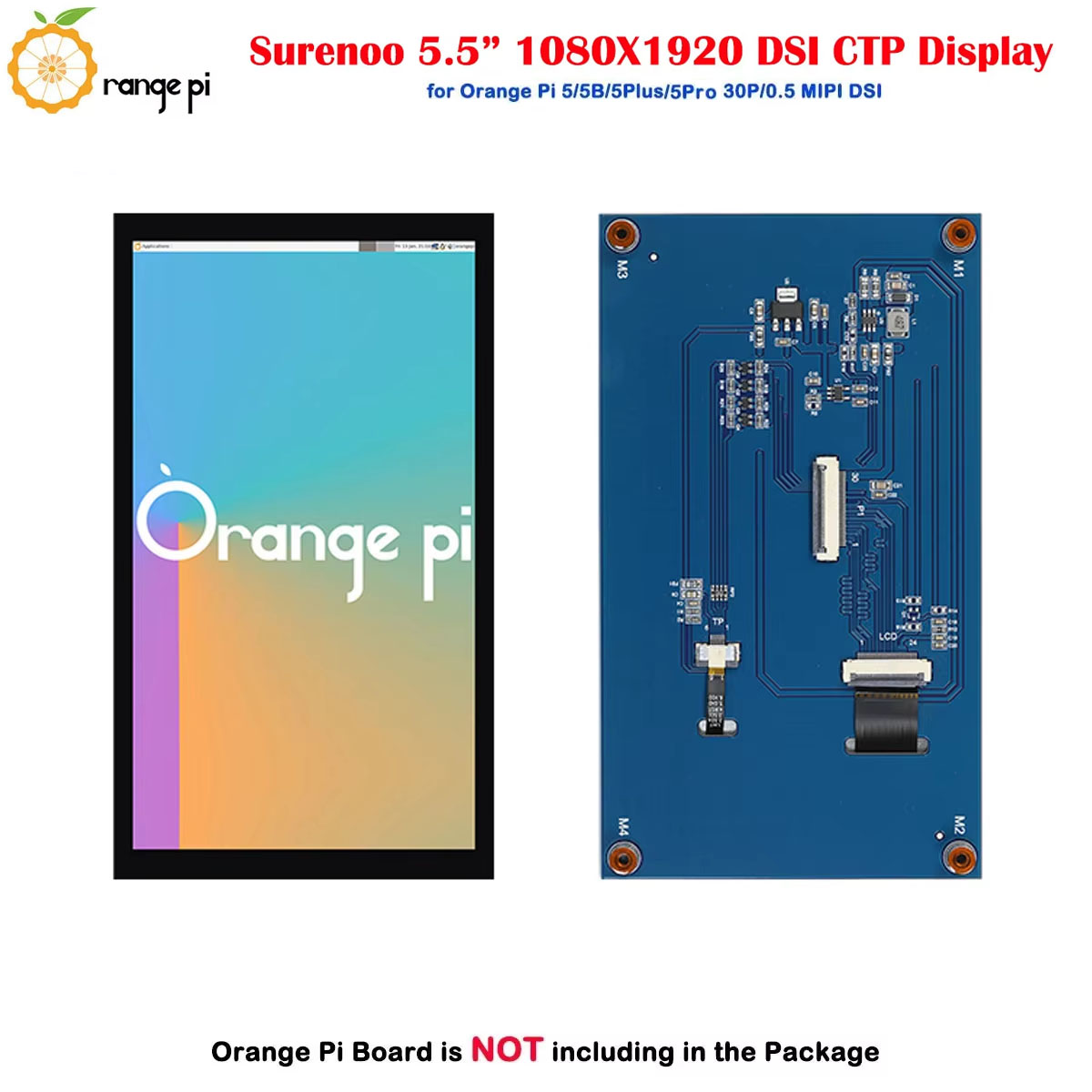 Surenoo DSI Display 5.5" inch 1080*1920 high-definition IPS LCD Display Module Screen with Capacitive Touch Panel CTP DSI MIPI Interface for Orange Pi OP-5 / OPI-5B / OPI-5Plus / OPI-5Pro Development Board