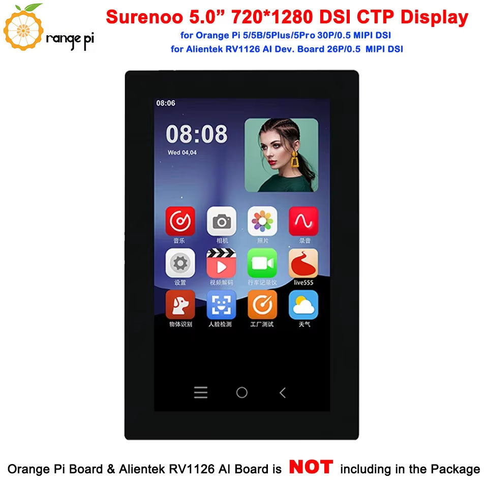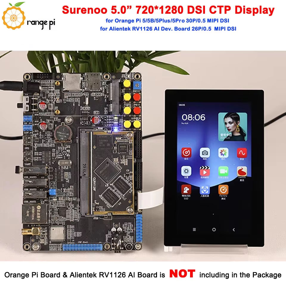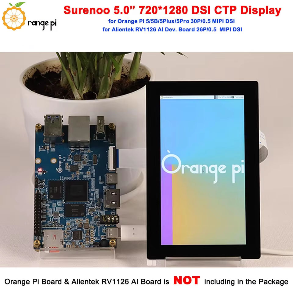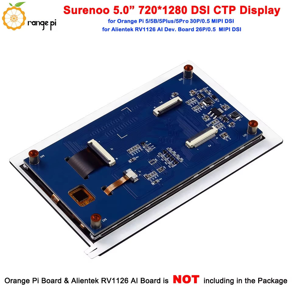 Surenoo DSI Display 5.0" inch 720*1280 high-definition IPS LCD Display Module Screen with Capacitive Touch Panel CTP DSI MIPI Interface for Orange Pi OP-5 / OPI-5B / OPI-5Plus / OPI-5Pro Development Board