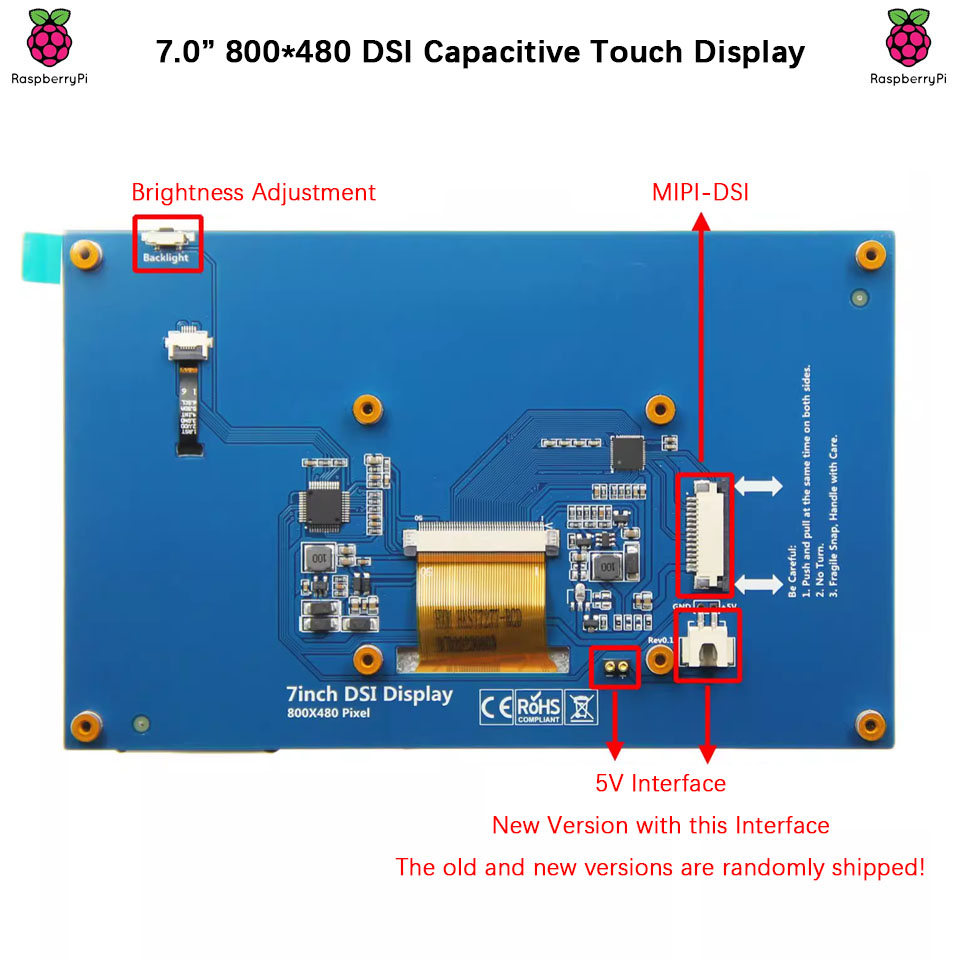 Surenoo DSI Display 7.0" inch 800*480 LCD Display Module Screen with Capacitive Touch Panel CTP DSI MIPI Interface for RaspBerry Pi 5/4B/3B+/3B, Orange Pi 3B(Ubuntu/Linux)