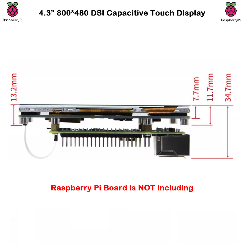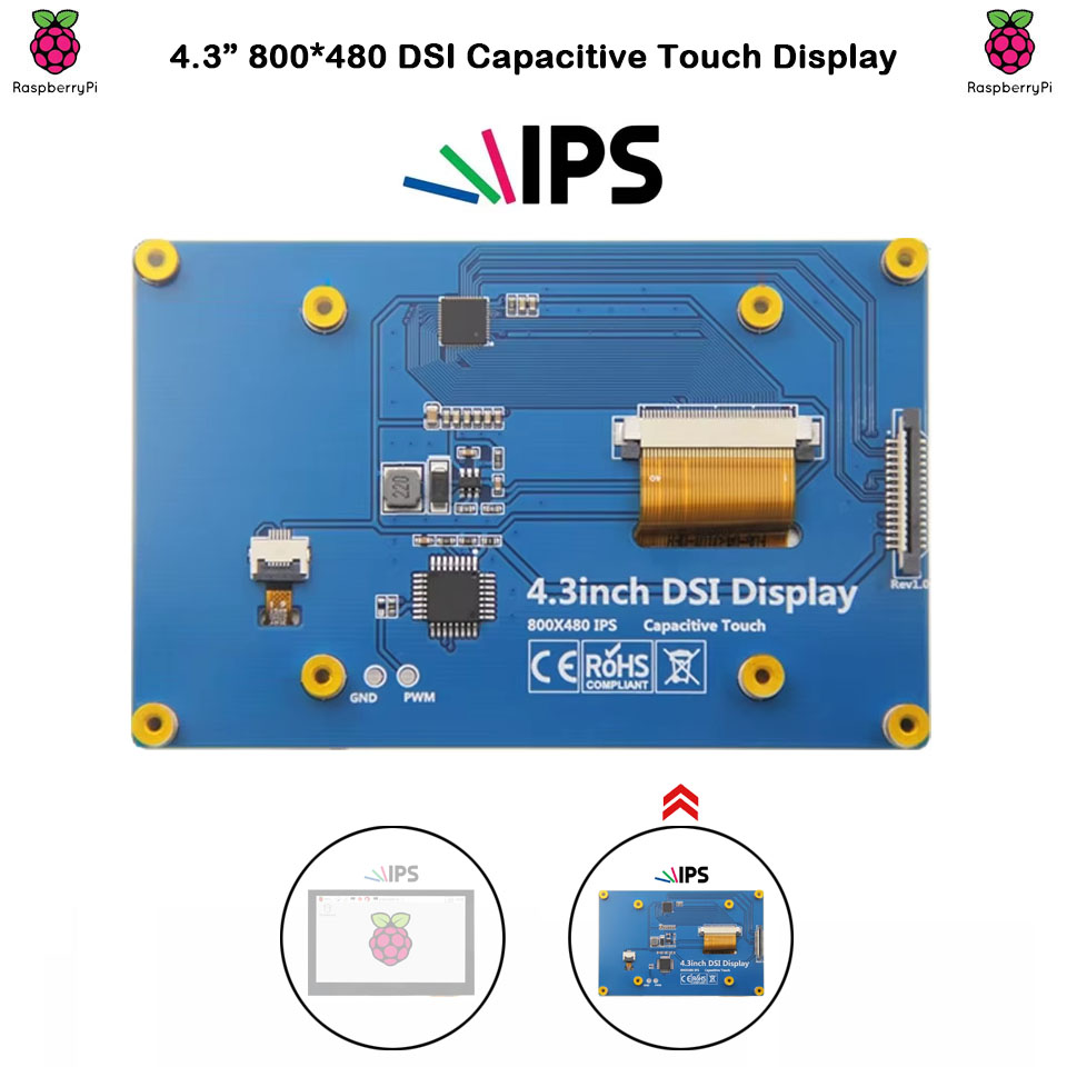 Surenoo DSI Display 4.3" inch 800*480 IPS LCD Display Module Screen with Capacitive Touch Panel CTP DSI MIPI Interface for RaspBerry Pi 5/4B/3B+/3B, Orange Pi 3B(Ubuntu/Linux)