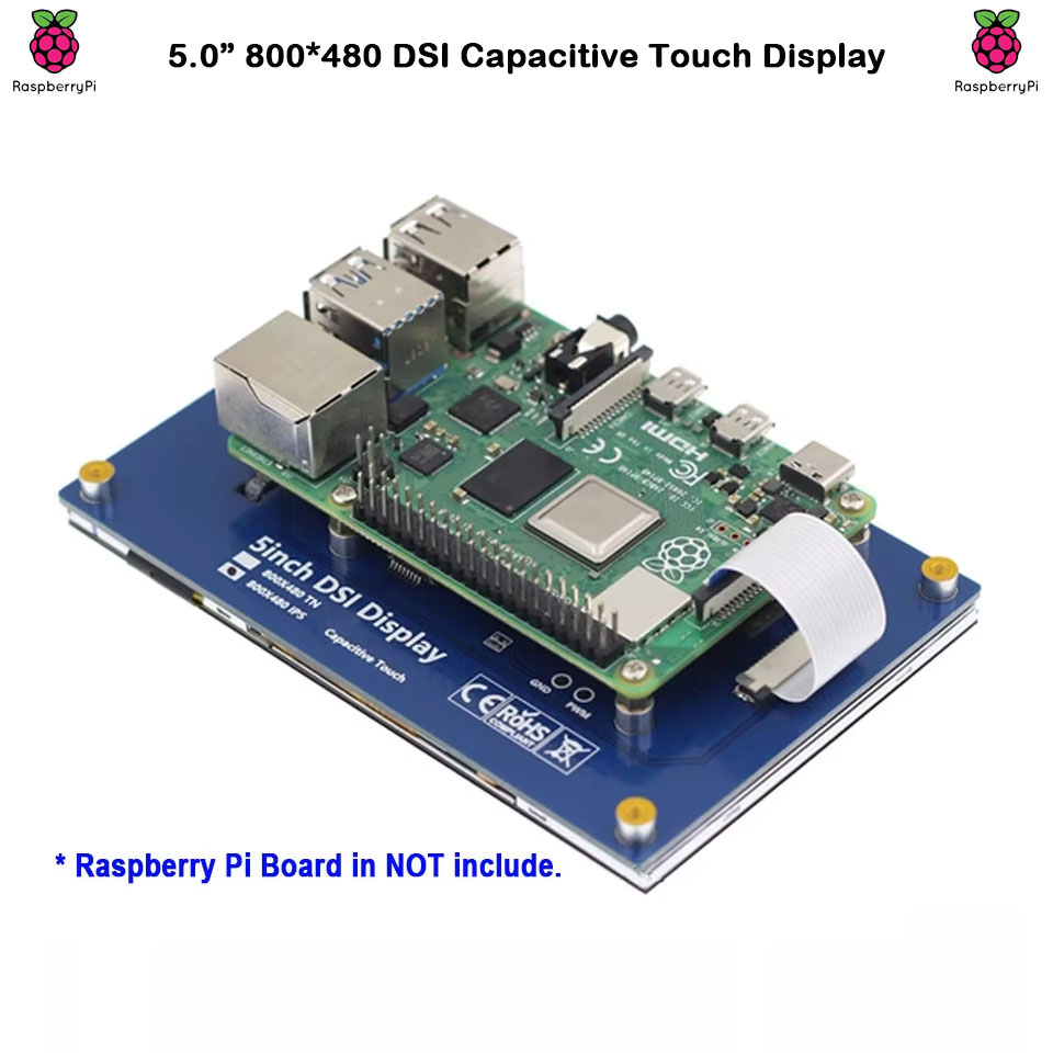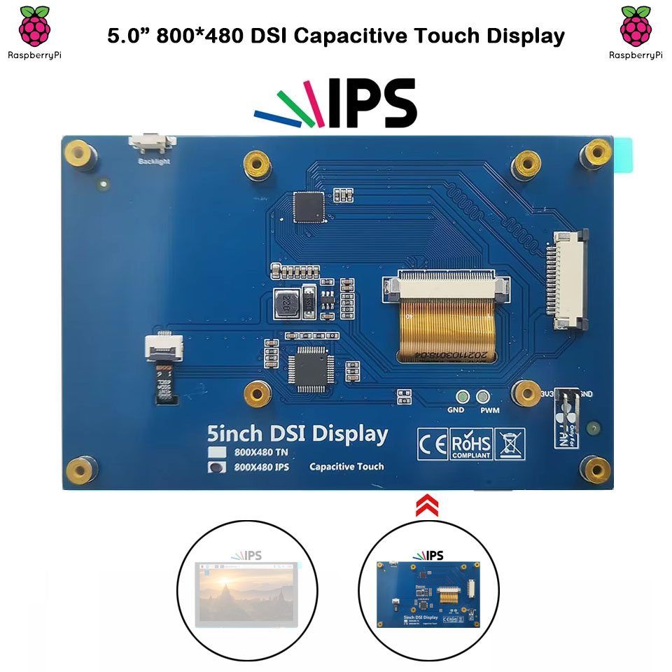 Surenoo DSI Display 5.0" inch 800*480 IPS LCD Display Module Screen with Capacitive Touch Panel CTP DSI MIPI Interface for RaspBerry Pi 5/4B/3B+/3B, Orange Pi 3B(Ubuntu/Linux)