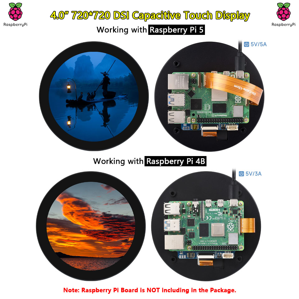 Surenoo DSI Display 4.0" inch 720*720 IPS Round Circle LCD Display Module Screen with Capacitive Touch Panel CTP DSI MIPI Interface for RaspBerry Pi 5/4B/3B+/3A+