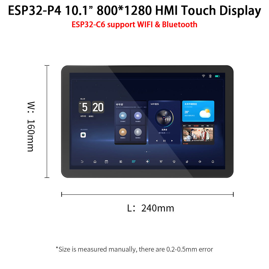 ESP32-P4 HMI Series10.1-inch IPS 800*1280 high-definition LCD Display Module Capacitive Touch Panel with ESP32-P4NRW32 ESP32-C6-MINI-1U-N4 WIFI and Bluetooth 32M PSRAM 16M FLASH JC8012P4A1 Development in Arduino IDE, ESP IDE, Micropython, LVGL
