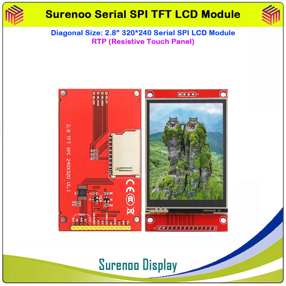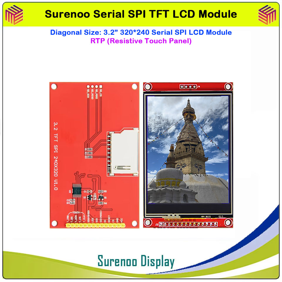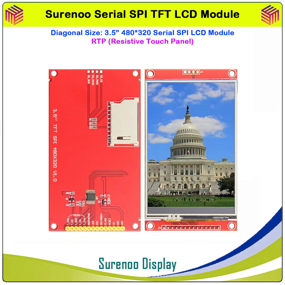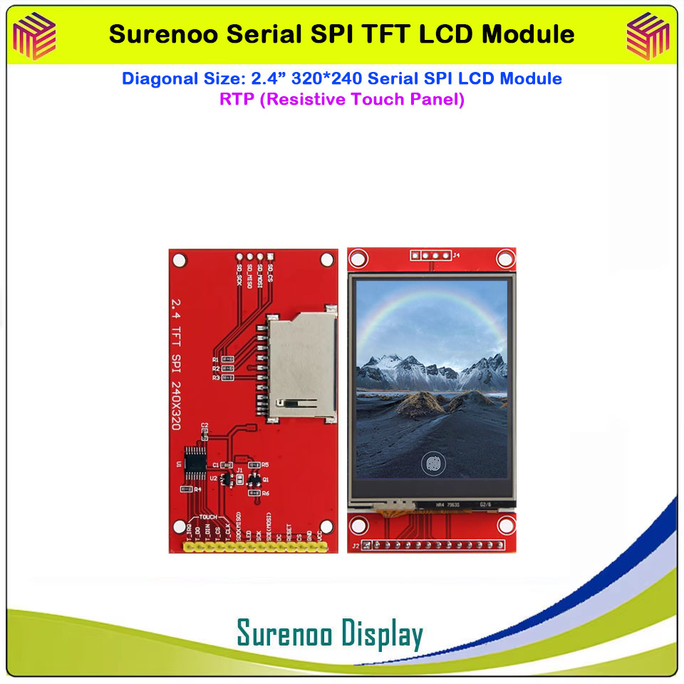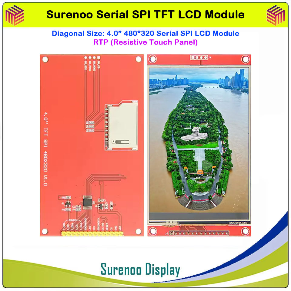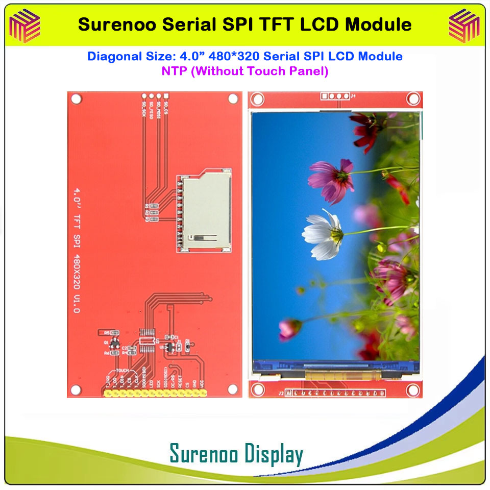 Surenoo 4.0" 480*320 / 3.5" 480*320 / 3.2" 320*240 / 2.8" 320*240 / 2.4" 320*240 Serial SPI TFT LCD Module Display Screen Resistive Touch Panel Optional for Arduino 51 STM32 Dev. Board