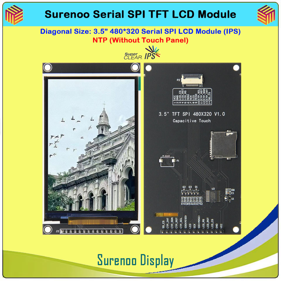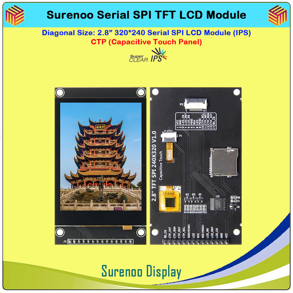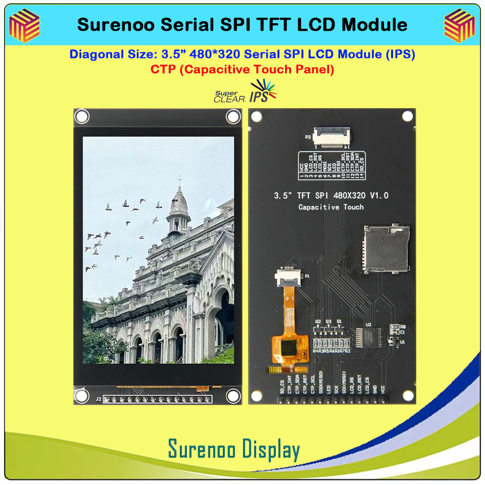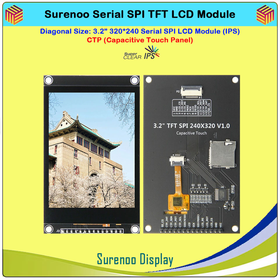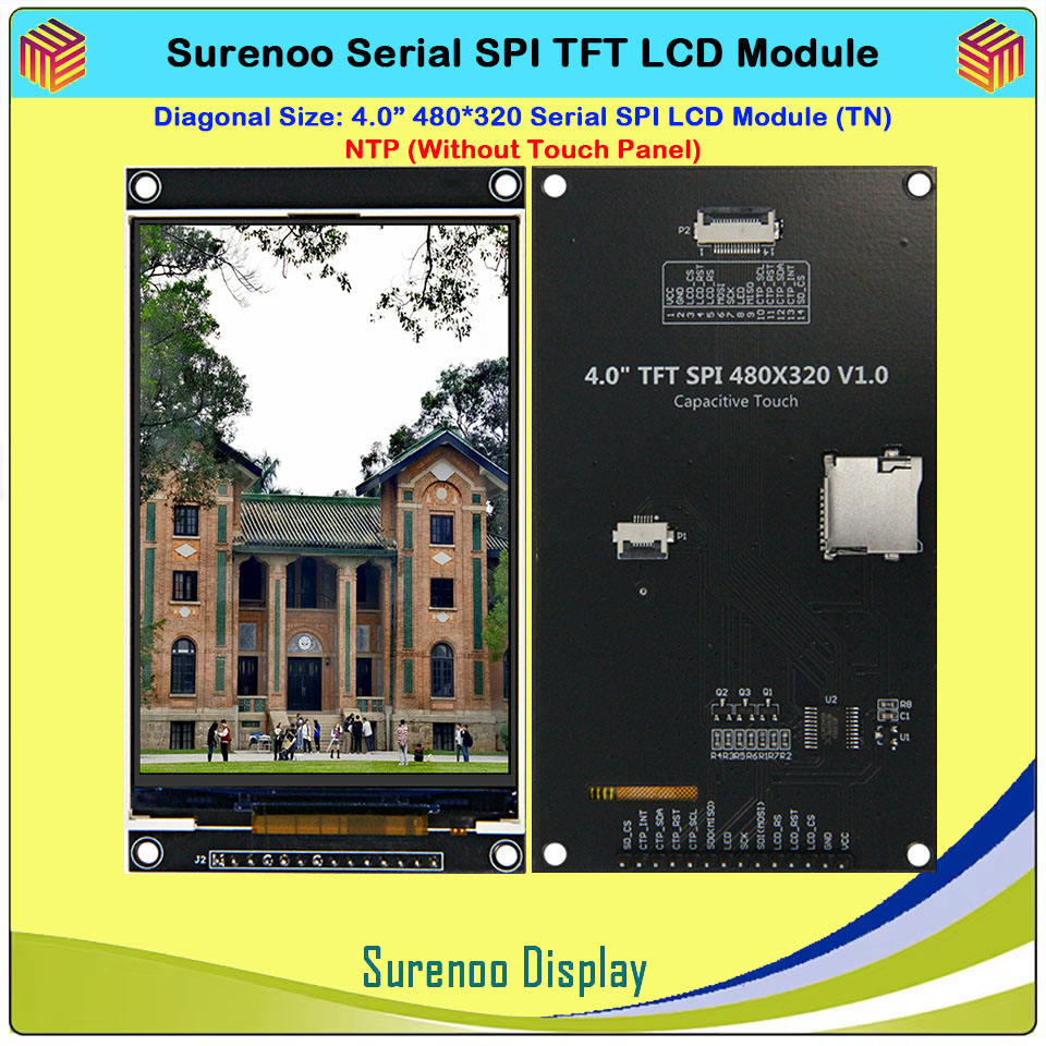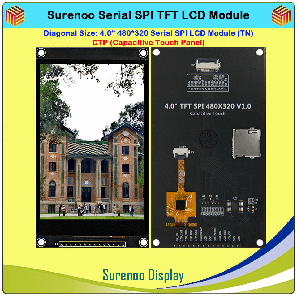 Surenoo 4.0" 480*320 / 3.5" 480*320 / 3.2" 320*240 / 2.8" 320*240 Serial SPI TFT IPS LCD Module Display Screen Capacitive Touch Panel CTP NTP Optional for Arduino 51 STM32 Dev. Board