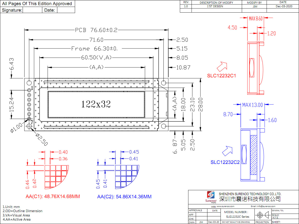Model No.: SLG12232C (2.0")