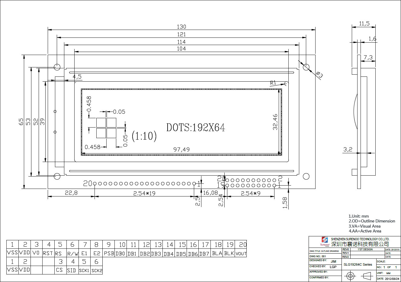 SLG19264C is a 192*64 Monochrome Graphic LCD Module, ST7920/AIP31020 Controller standard 20P/2.54 19264 parallel Graphic LCD Module.