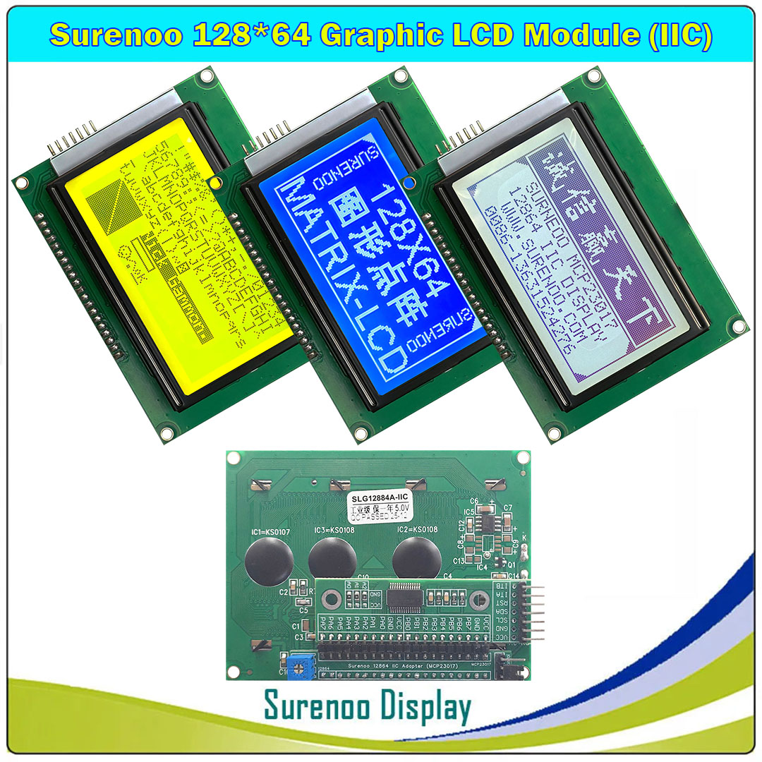 SLG12864A Outline=93.00X70.00MM 3.0" 12864 128X64 Surenoo Graphic LCD Module Display Screen Panel 6800 4/8-bit Parallel KS0108 AIP31108 Controller STN Yellow Green STN Blue Negative White LED Backlight for MCU 8051 PIC AVR ARM