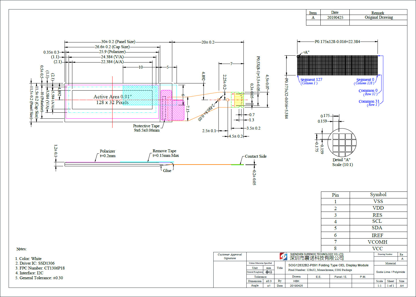 • Outline Drawing (OLED Panel: SOG12832B2_P091-8P/0.5)