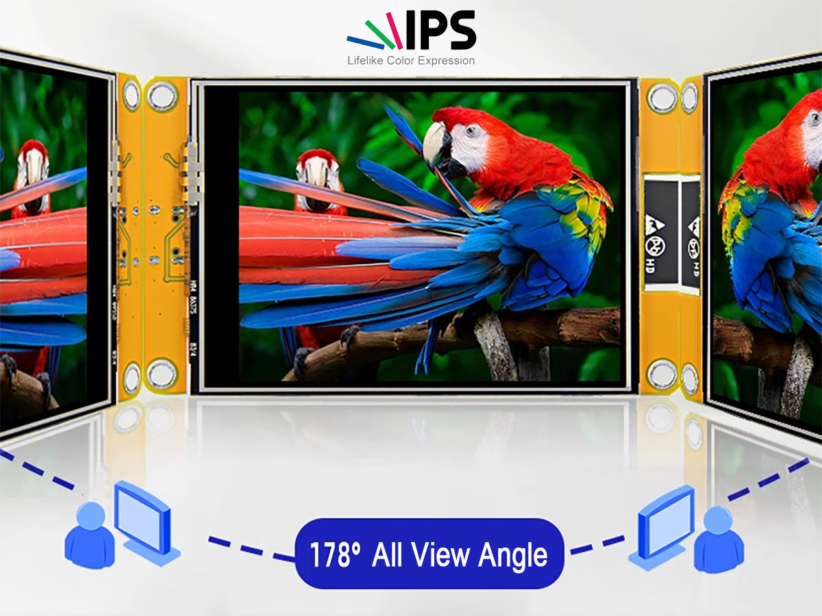 - >> 3.2-inch IPS color screen, 240x320 resolution, maximum support 262K color (RGB666), display rich colors
