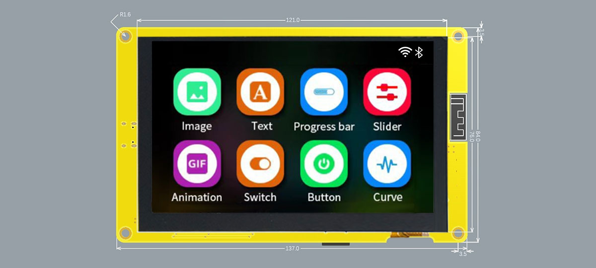 This LCD module uses ESP32-S3-WROOM-1-N16R8 module as the main control, the main control is a dual-core MCU, integrated WI-FI and Bluetooth functions, the main frequency can reach 240MHz, 512KB SRAM, 384KB ROM, 8M PSRAM,Flash size is 16MB, The display resolution is 800*480, Capacitive touch. The module includes LCD display screen, backlight control circuit, touch screen control circuit . Reserve the TF card interface, Up to 12 IO available, this module supports development in Arduino IDE, ESP IDE, Micropython and Mixly.