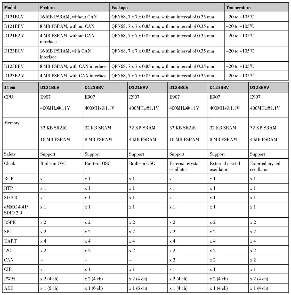 Controller: ArtInChip D121BBV