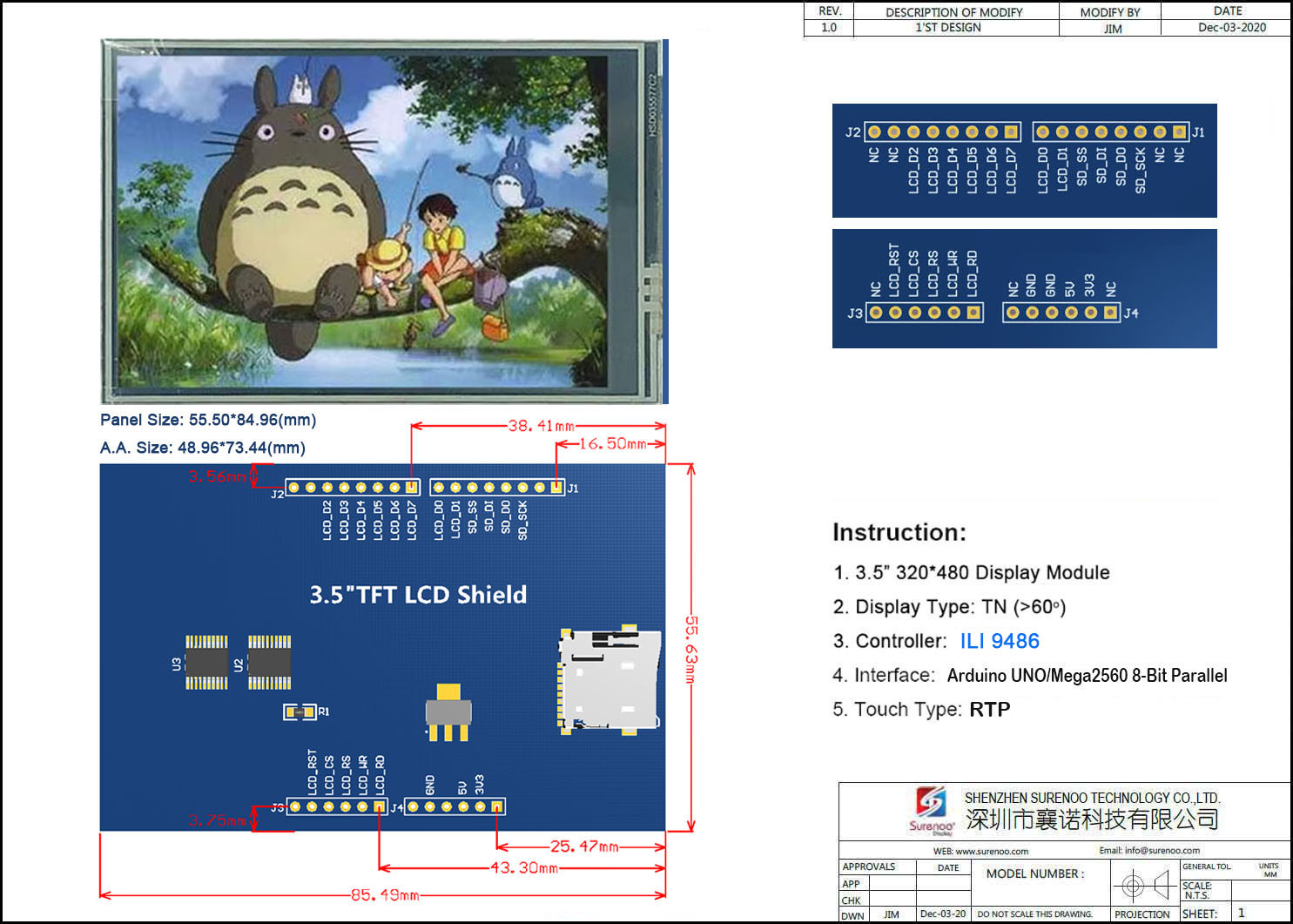 Model Details 3.5" / 320*480 / SAR0350A-320480 / ILI9486
