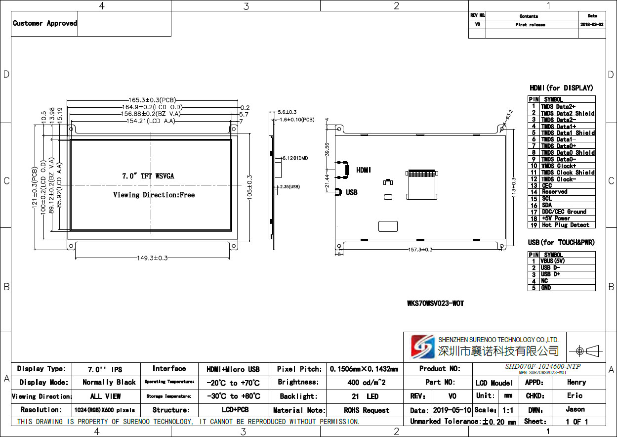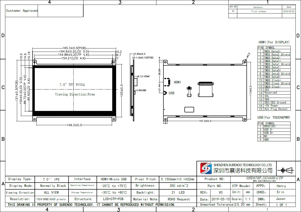 Model No. SHD070F-1024600-CTP/NTP (IPS) -