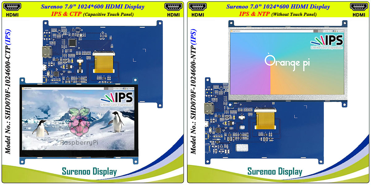 Home / Surenoo HDMI Display 7.0" inch 1024*600 IPS LCD Display Module Screen Monitor with USB Capacitive Touch Panel CTP for Windows Win11 RaspBerry Pi 4B/5