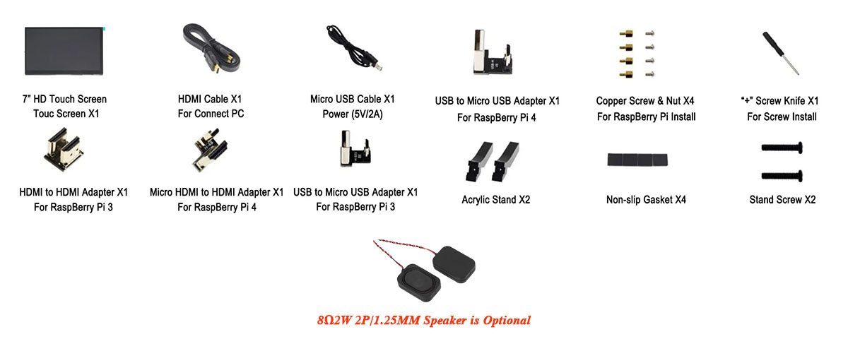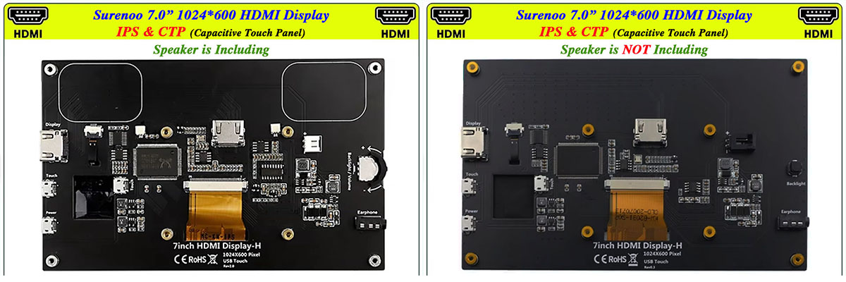 Home / Surenoo HDMI Display 7.0" inch 1024*600 IPS LCD Display Module Screen Monitor with USB Capacitive Touch Panel CTP for Windows Win11 RaspBerry Pi 4B/5, Speaker is Optional