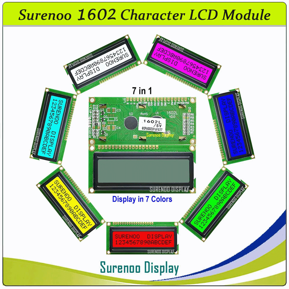 SLC1602L PCB=80.00X36.00 1602 16*2 Surenoo Character LCD Module Display Screen Panel 6800 4-bit 8-bit Parallel AIP31066 SPLC780D ST7066 Controller FSTN Positive Double D-FSTN Negative with RGB LED Backlight